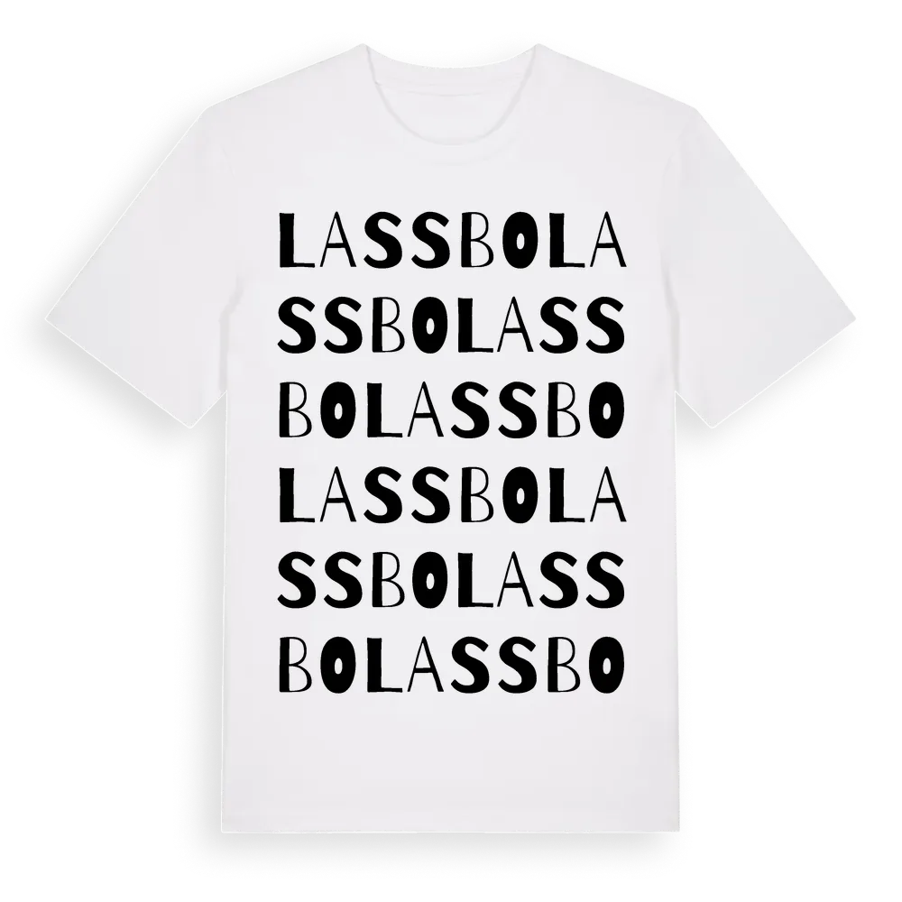 Lassbo ordlek t-shirt är inspirerad av Lassbo i Värmlands län, Sverige. Tröjan är designad för dig som har en speciell koppling till platsen – oavsett om du bor här, har rötterna här eller bara älskar Lassbo.