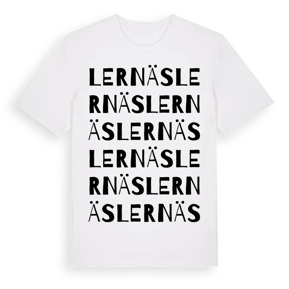 En ordlek byggd på Lernäss namn. Subtilt och klurig – ett motiv som bara de som verkligen känner platsen fullt ut förstår. Premium bomull, unisex – från Lernäs i Värmlands län.