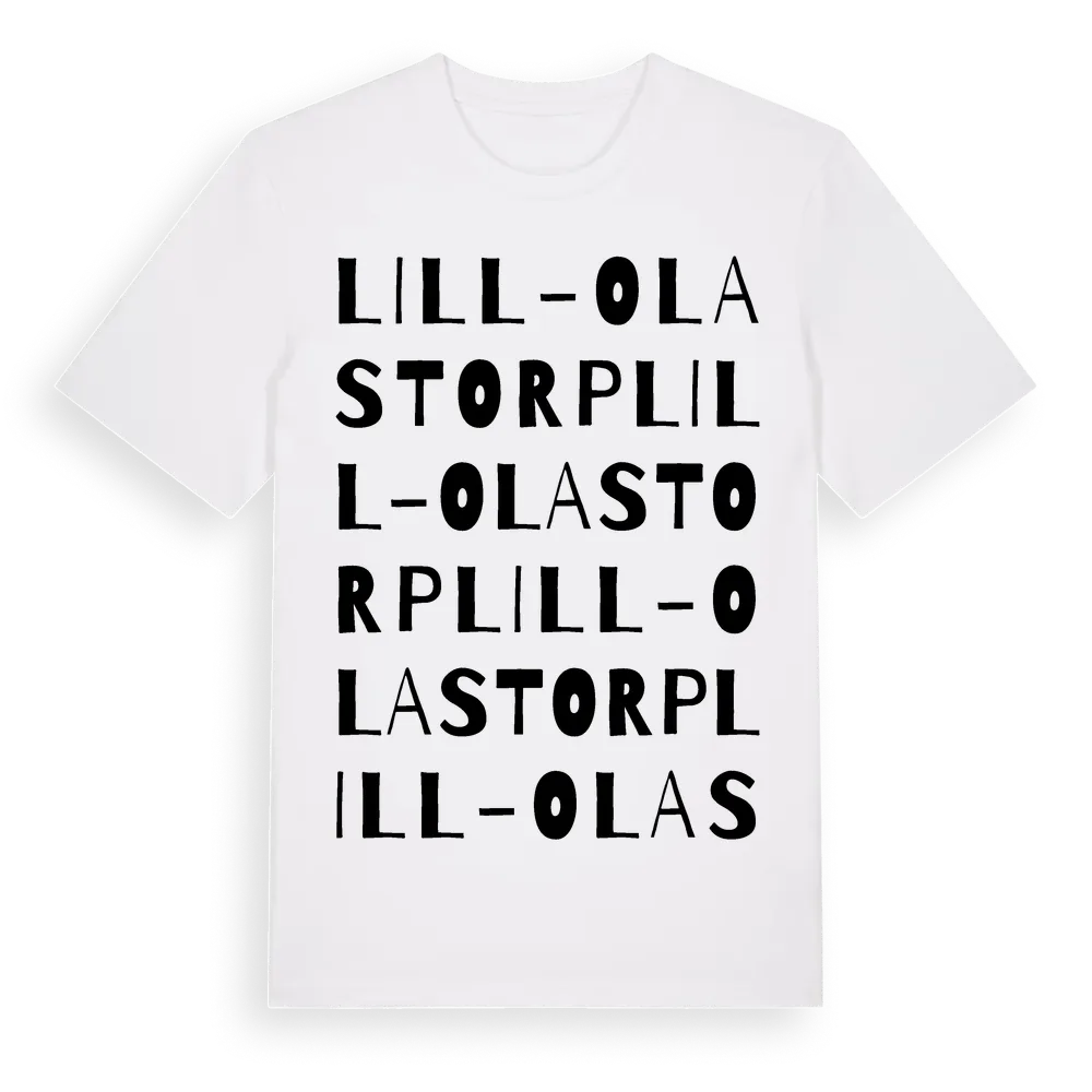 Lill-Olas Torp ordlek t-shirt är inspirerad av Lill-Olas Torp i Värmlands län, Sverige. Tröjan är designad för dig som har en speciell koppling till platsen – oavsett om du bor här, har rötterna här eller bara älskar Lill-Olas Torp.
