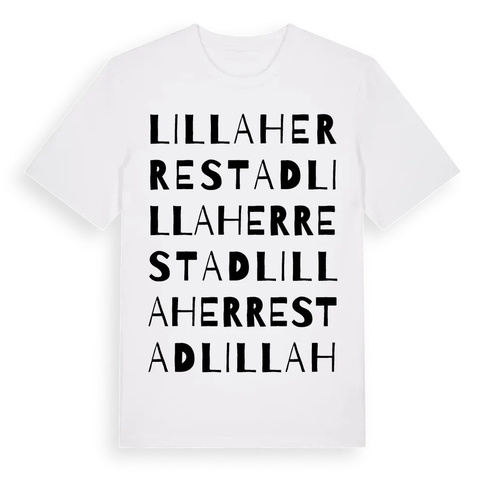 Lilla Herrestad ordlek t-shirt är inspirerad av Lilla Herrestad i Värmlands län, Sverige. Tröjan är designad för dig som har en speciell koppling till platsen – oavsett om du bor här, har rötterna här eller bara älskar Lilla Herrestad.