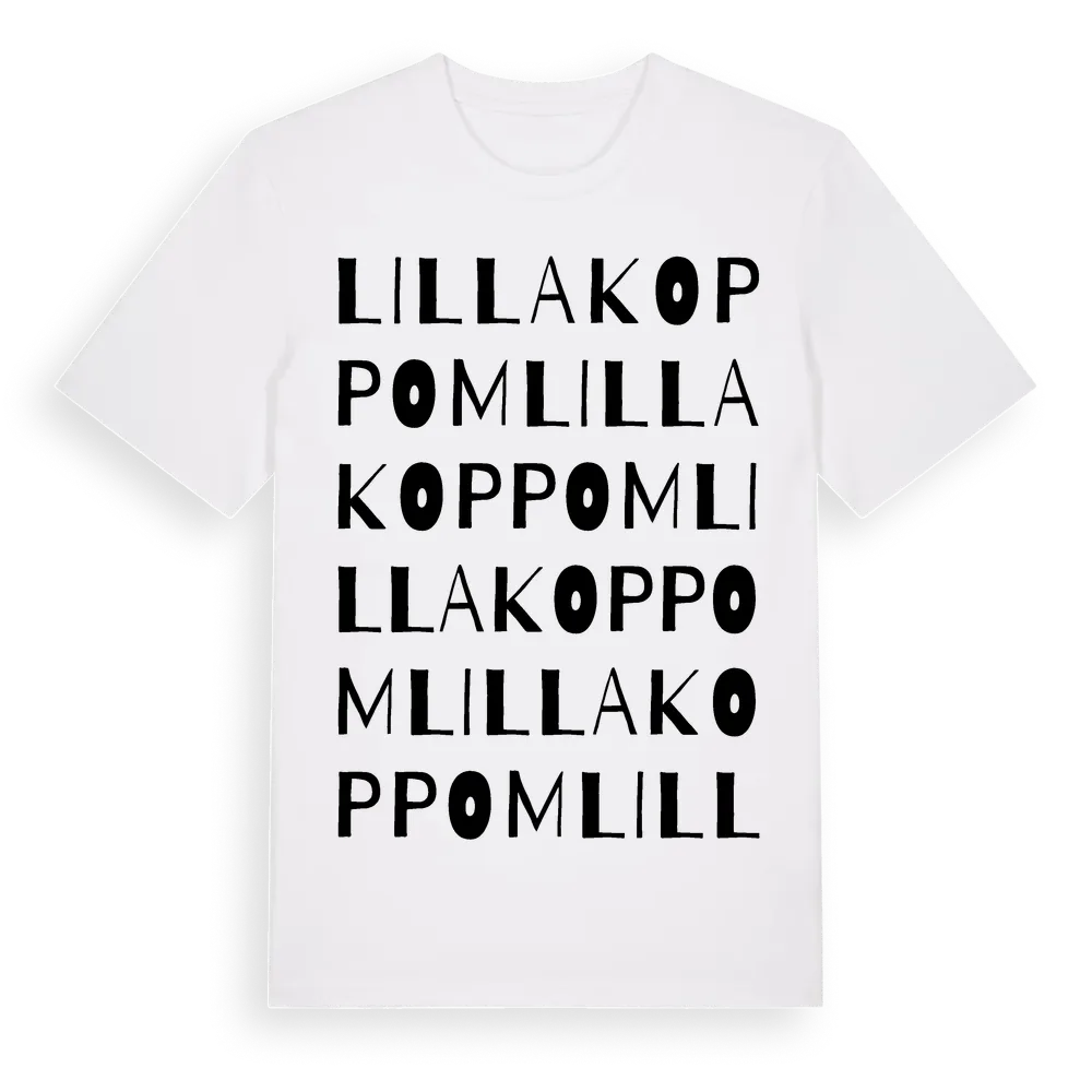 Lilla Koppom ordlek t-shirt är inspirerad av Lilla Koppom i Värmlands län, Sverige. Tröjan är designad för dig som har en speciell koppling till platsen – oavsett om du bor här, har rötterna här eller bara älskar Lilla Koppom.