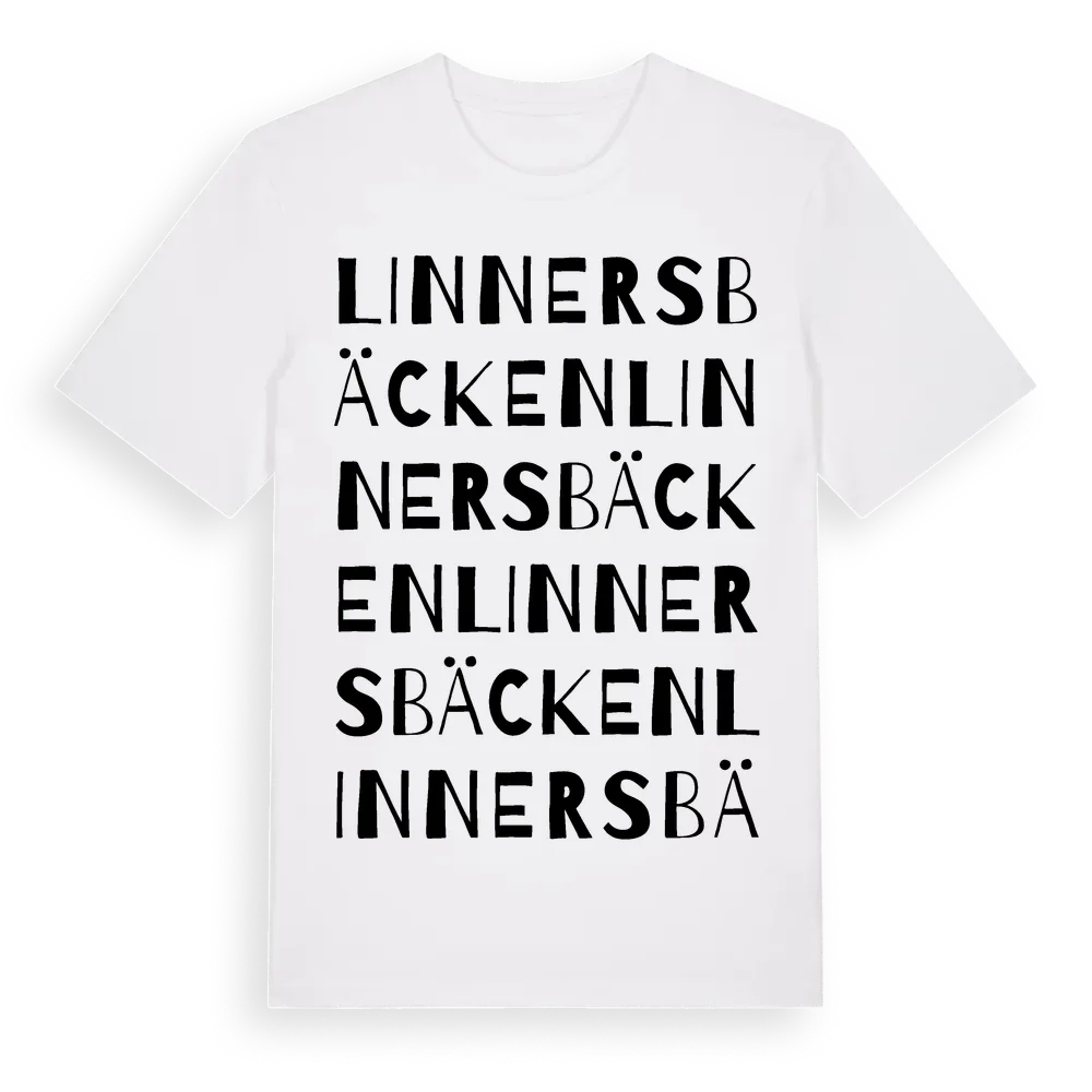 Linnersbäcken ordlek t-shirt är inspirerad av Linnersbäcken i Värmlands län, Sverige. Tröjan är designad för dig som har en speciell koppling till platsen – oavsett om du bor här, har rötterna här eller bara älskar Linnersbäcken.