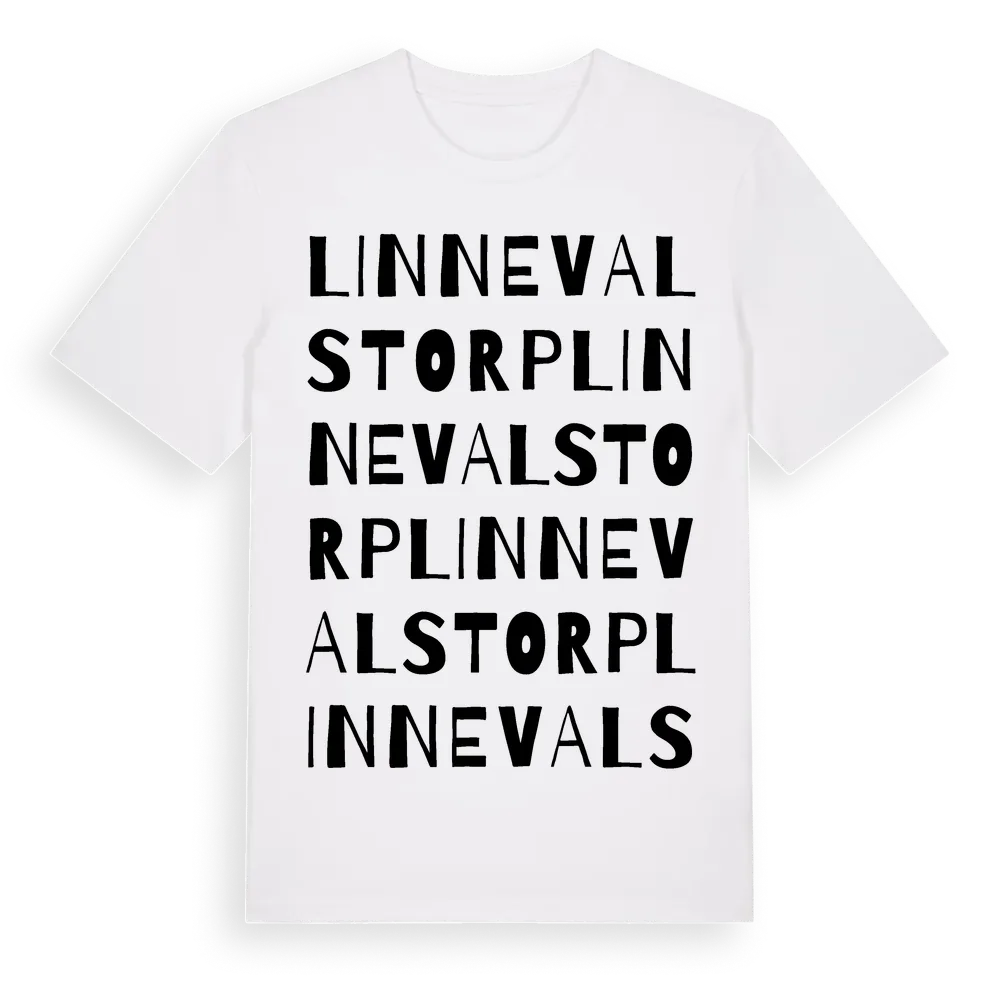 Linnevalstorp ordlek t-shirt är inspirerad av byn Linnevalstorp i Värmlands län, Sverige. Tröjan är designad för dig som har en speciell koppling till platsen – oavsett om du bor här, har rötterna här eller bara älskar Linnevalstorp.