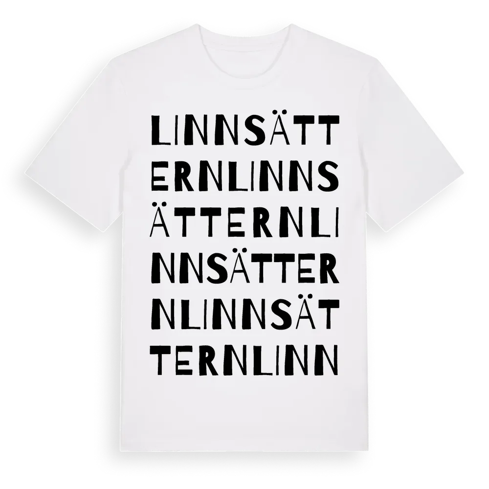 Linnsättern ordlek t-shirt är inspirerad av Linnsättern i Värmlands län, Sverige. Tröjan är designad för dig som har en speciell koppling till platsen – oavsett om du bor här, har rötterna här eller bara älskar Linnsättern.