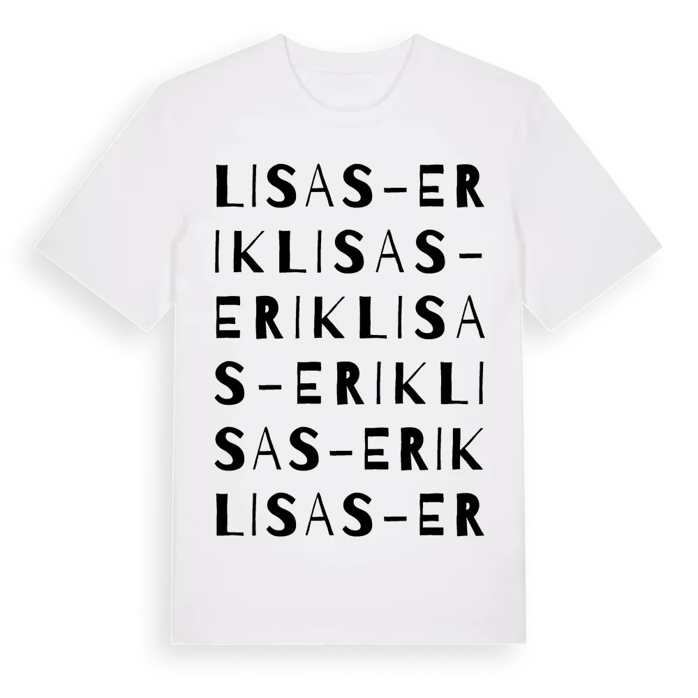 Lisas-Erik ordlek t-shirt är inspirerad av Lisas-Erik i Värmlands län, Sverige. Tröjan är designad för dig som har en speciell koppling till platsen – oavsett om du bor här, har rötterna här eller bara älskar Lisas-Erik.