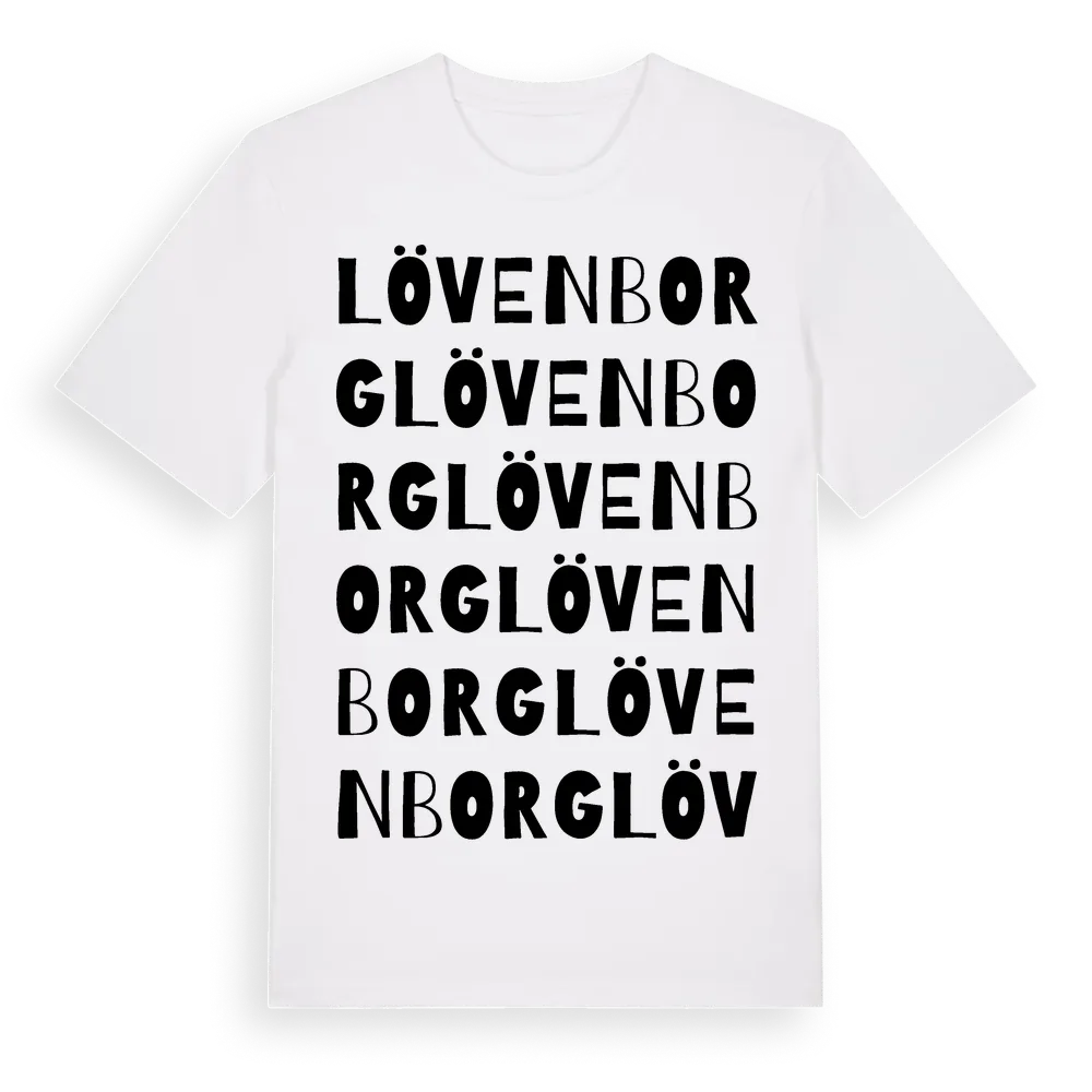 Lövenborg ordlek t-shirt är inspirerad av Lövenborg i Värmlands län, Sverige. Tröjan är designad för dig som har en speciell koppling till platsen – oavsett om du bor här, har rötterna här eller bara älskar Lövenborg.