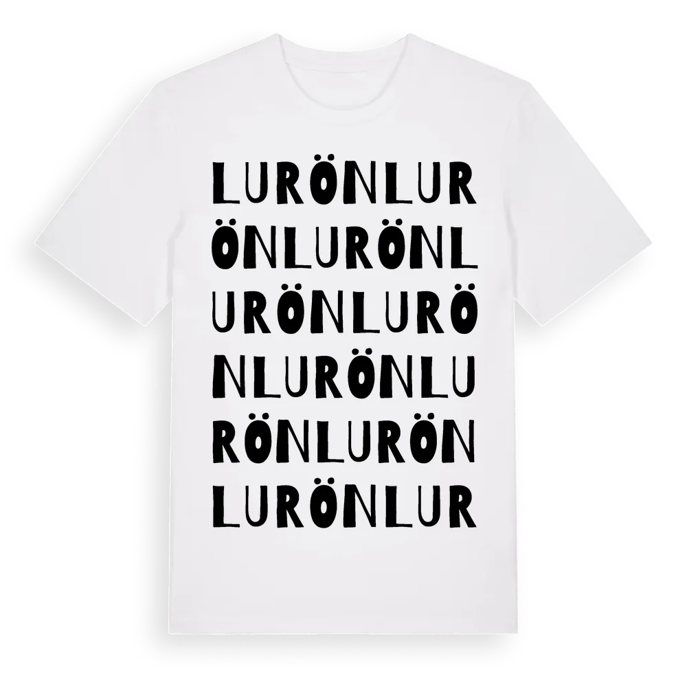 En ordlek byggd på Luröns namn. Subtilt och klurig – ett motiv som bara de som verkligen känner platsen fullt ut förstår. Premium bomull, unisex – från ön Lurön i Värmlands län.