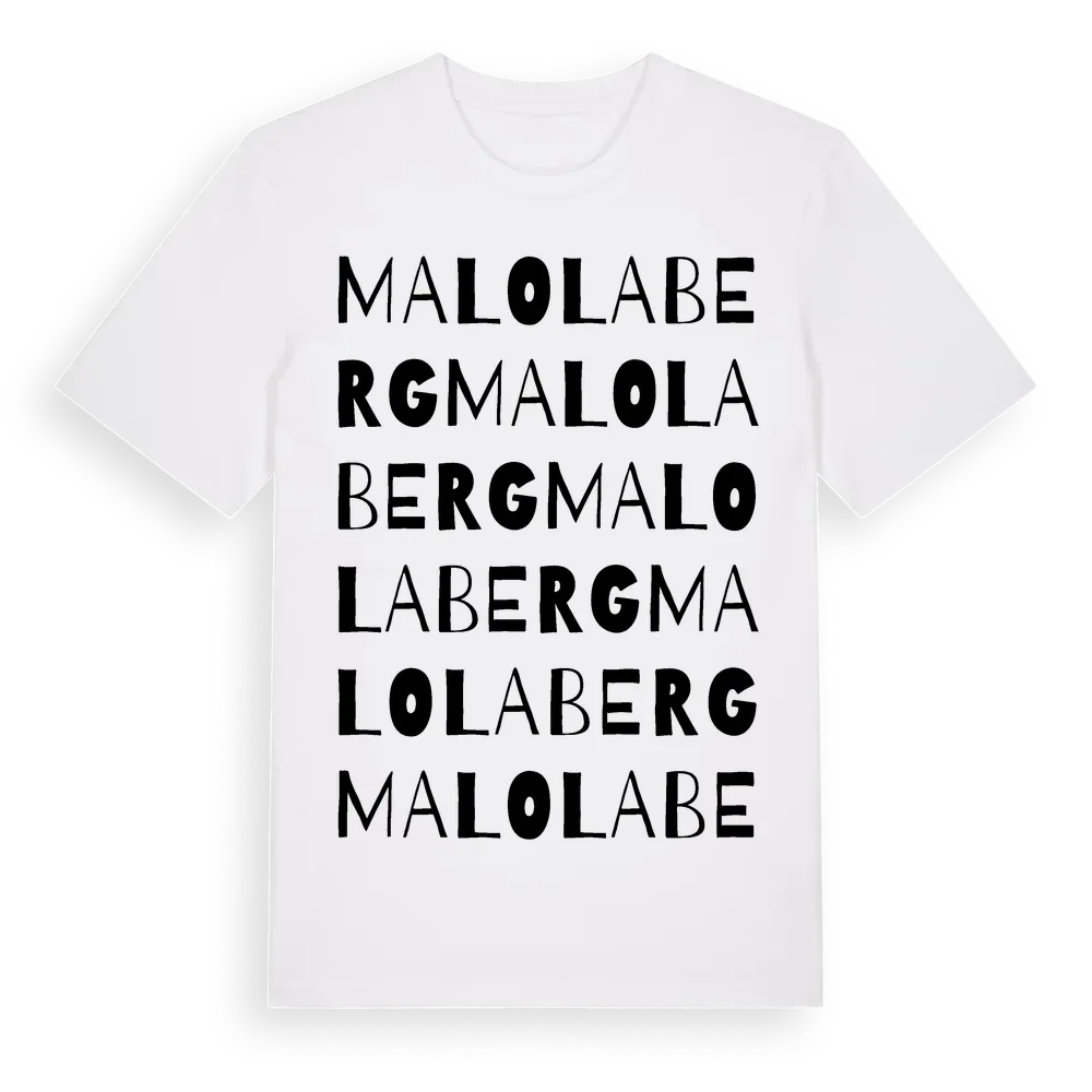 Malolaberg ordlek t-shirt är inspirerad av Malolaberg i Värmlands län, Sverige. Tröjan är designad för dig som har en speciell koppling till platsen – oavsett om du bor här, har rötterna här eller bara älskar Malolaberg.