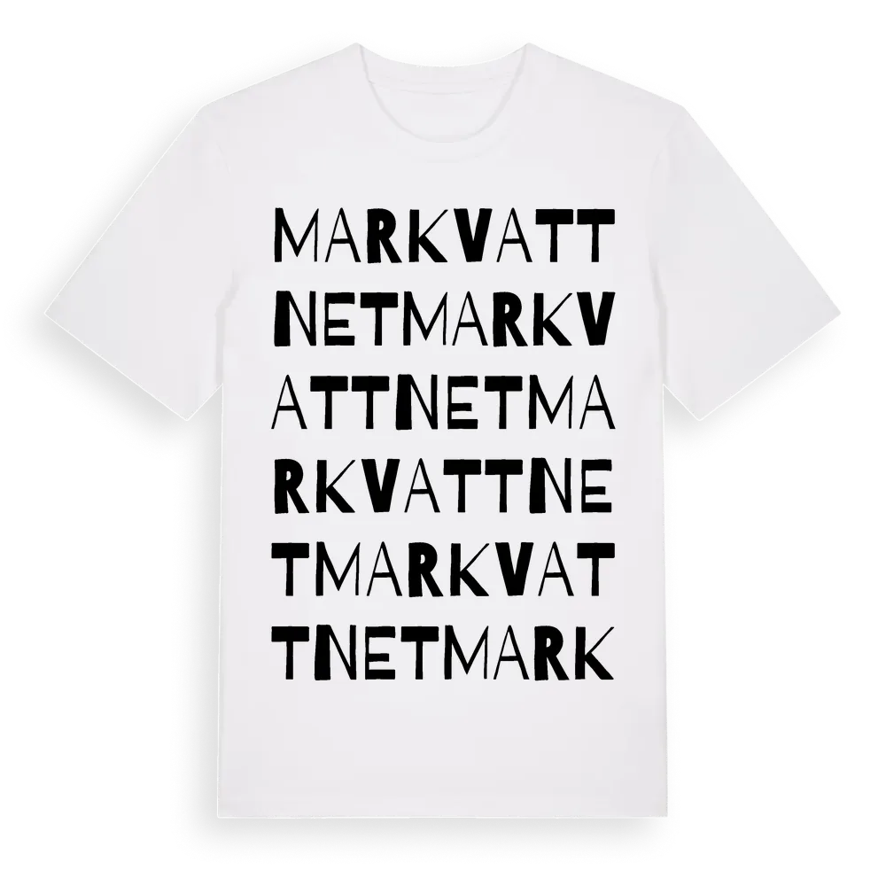 En ordlek byggd på Markvattnets namn. Subtilt och klurig – ett motiv som bara de som verkligen känner platsen fullt ut förstår. Premium bomull, unisex – från Markvattnet i Värmlands län.