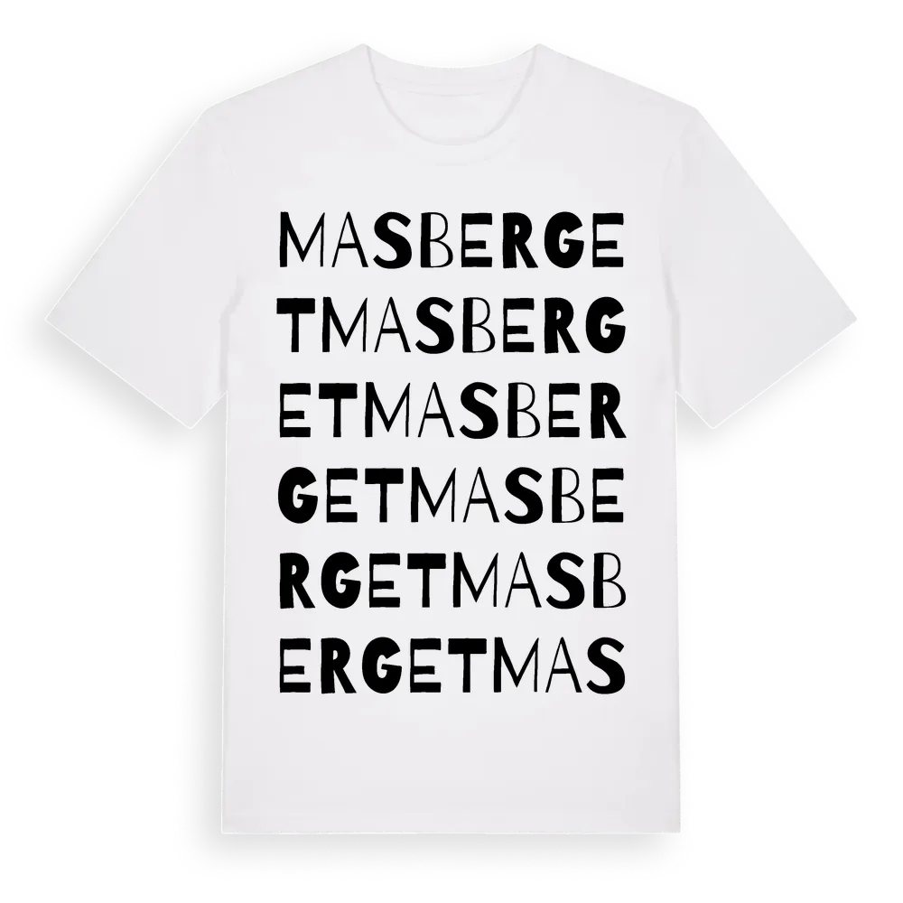 Masberget ordlek t-shirt är inspirerad av Masberget i Värmlands län, Sverige. Tröjan är designad för dig som har en speciell koppling till platsen – oavsett om du bor här, har rötterna här eller bara älskar Masberget.