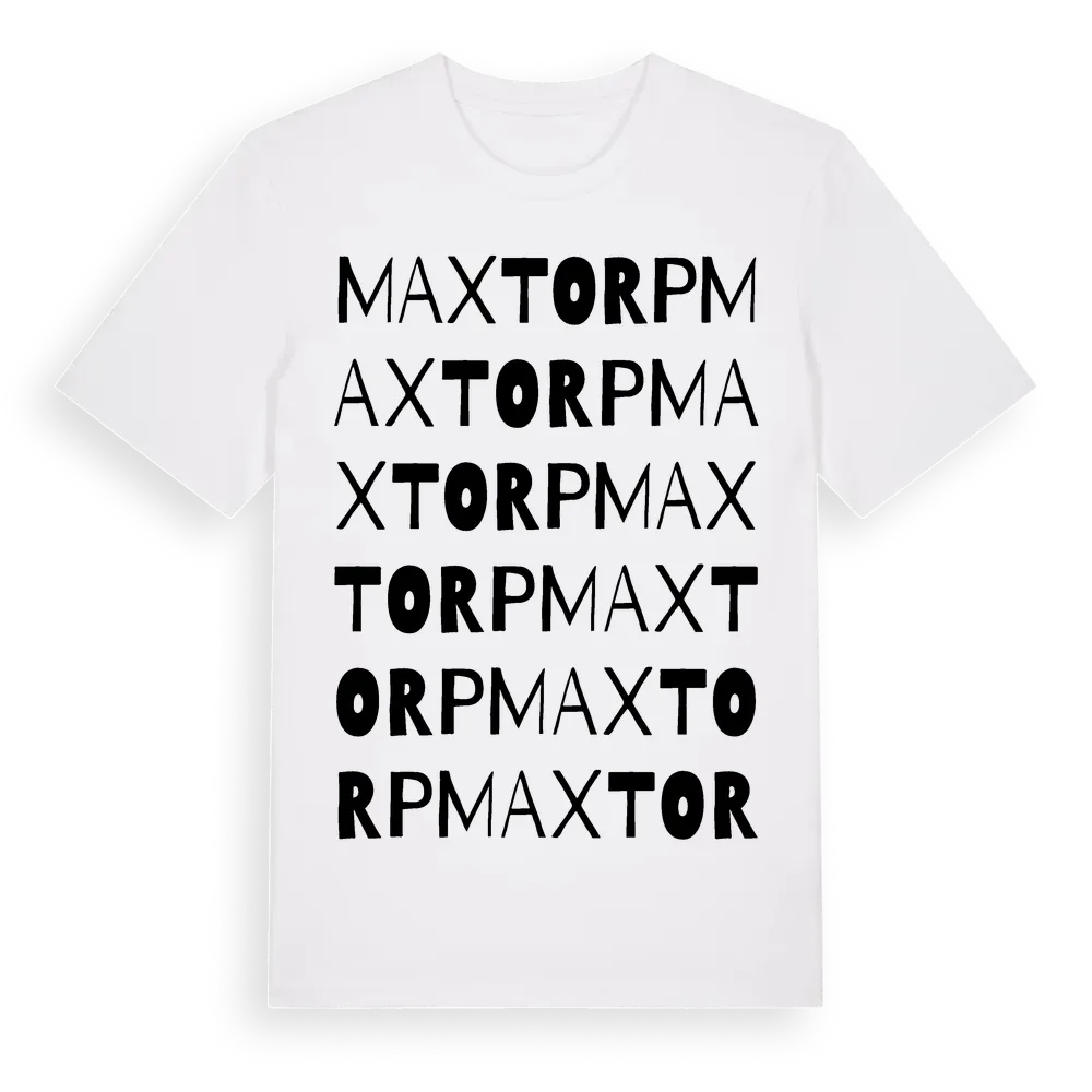 Maxtorp ordlek t-shirt är inspirerad av Maxtorp i Värmlands län, Sverige. Tröjan är designad för dig som har en speciell koppling till platsen – oavsett om du bor här, har rötterna här eller bara älskar Maxtorp.