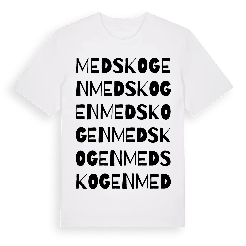 Medskogen ordlek t-shirt är inspirerad av Medskogen i Värmlands län, Sverige. Tröjan är designad för dig som har en speciell koppling till platsen – oavsett om du bor här, har rötterna här eller bara älskar Medskogen.