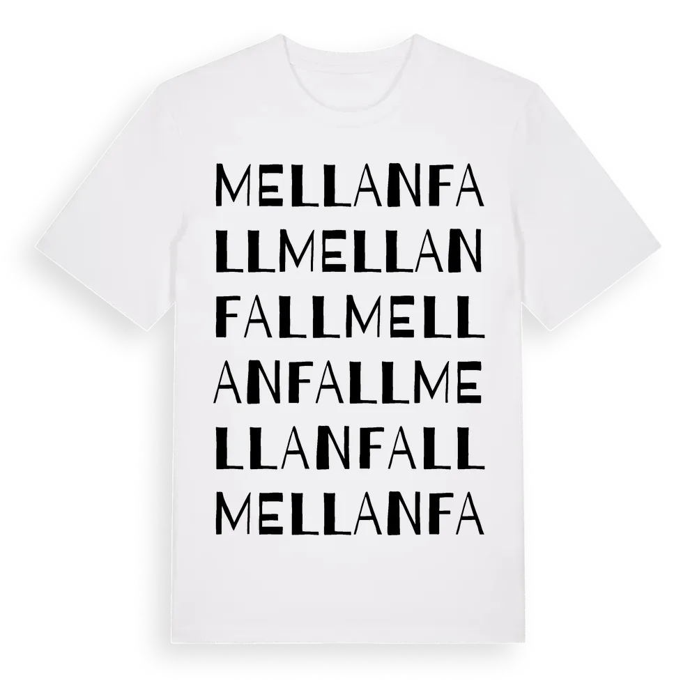 Mellanfall ordlek t-shirt är inspirerad av Mellanfall i Värmlands län, Sverige. Tröjan är designad för dig som har en speciell koppling till platsen – oavsett om du bor här, har rötterna här eller bara älskar Mellanfall.