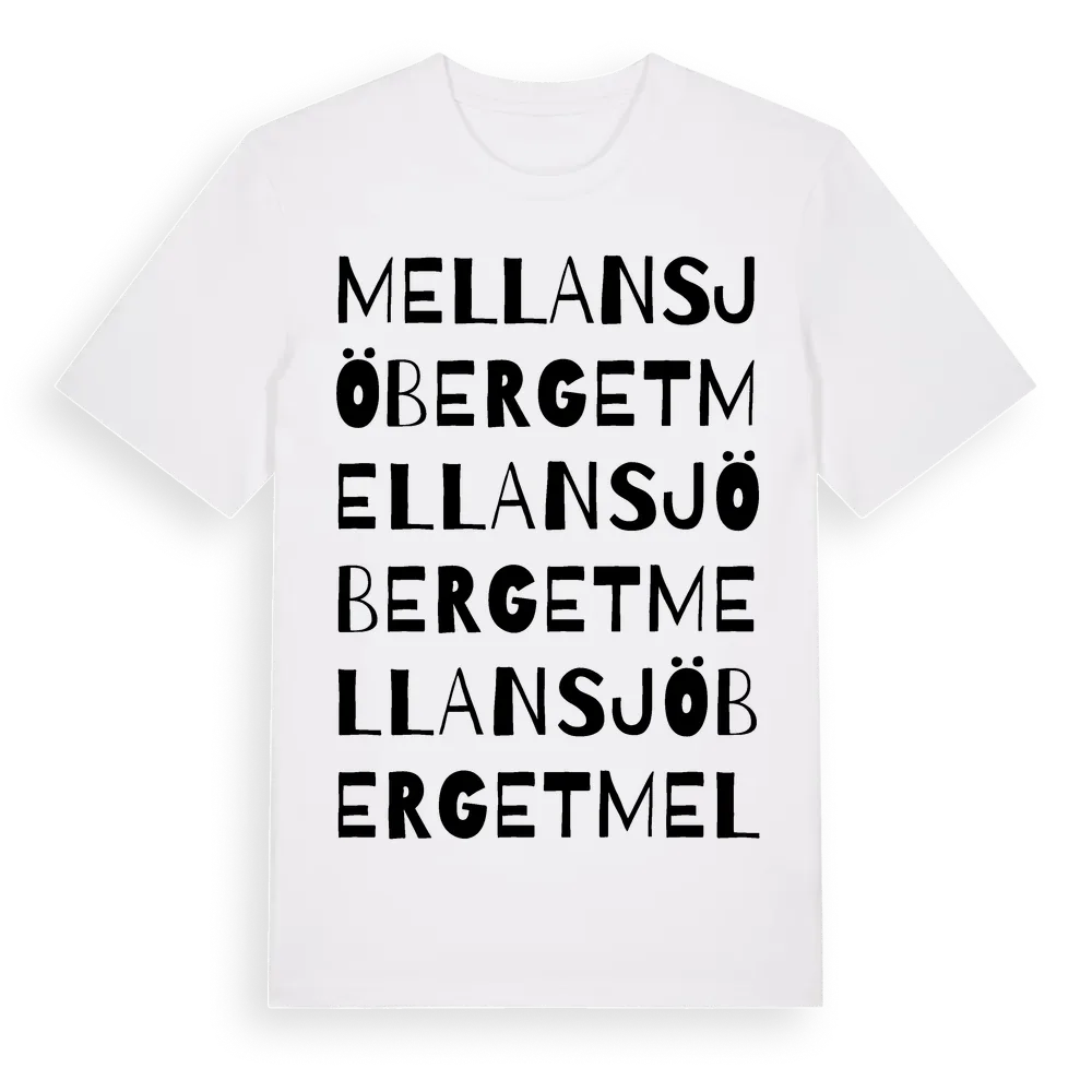 Mellansjöberget ordlek t-shirt är inspirerad av Mellansjöberget i Värmlands län, Sverige. Tröjan är designad för dig som har en speciell koppling till platsen – oavsett om du bor här, har rötterna här eller bara älskar Mellansjöberget.