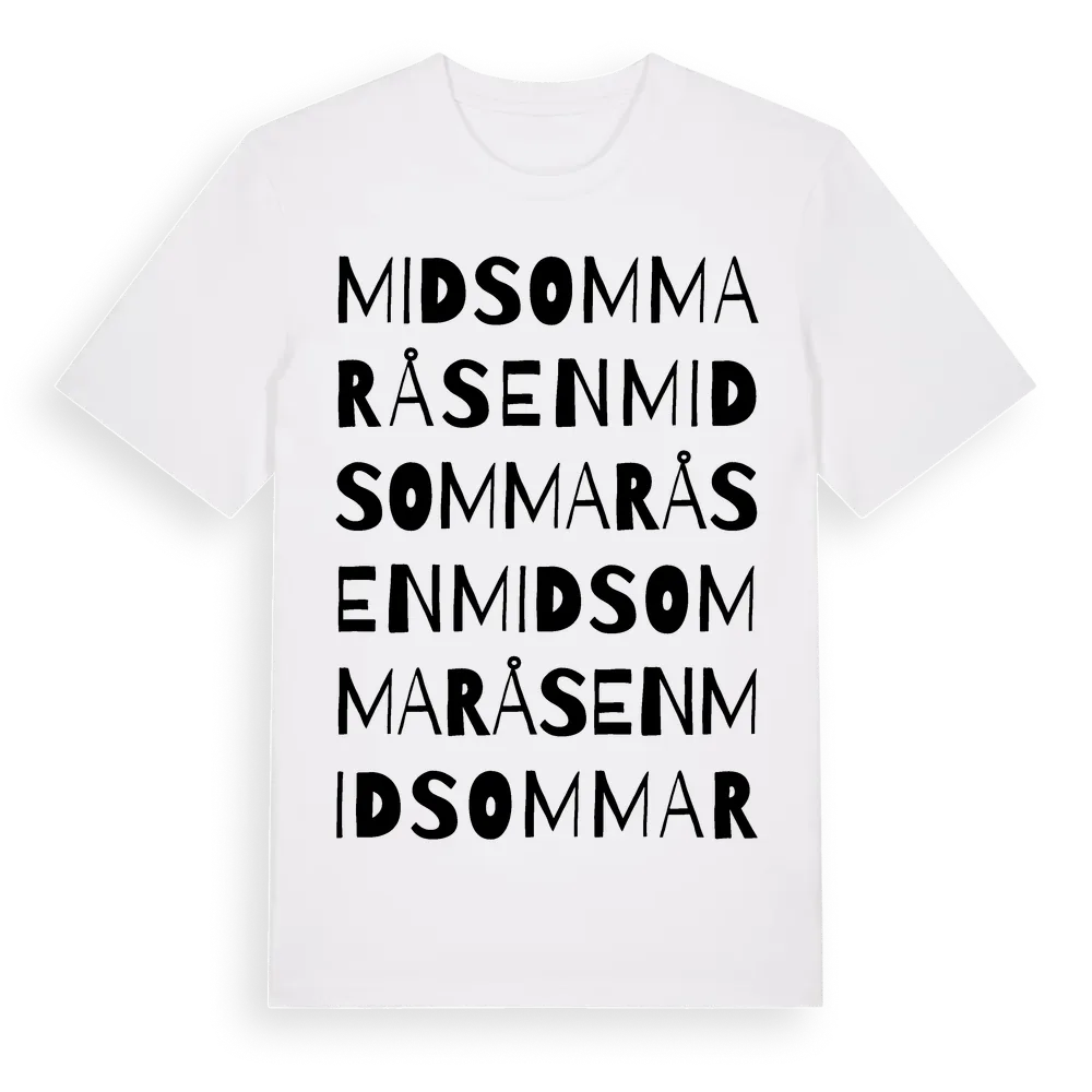 Midsommaråsen ordlek t-shirt är inspirerad av Midsommaråsen i Värmlands län, Sverige. Tröjan är designad för dig som har en speciell koppling till platsen – oavsett om du bor här, har rötterna här eller bara älskar Midsommaråsen.
