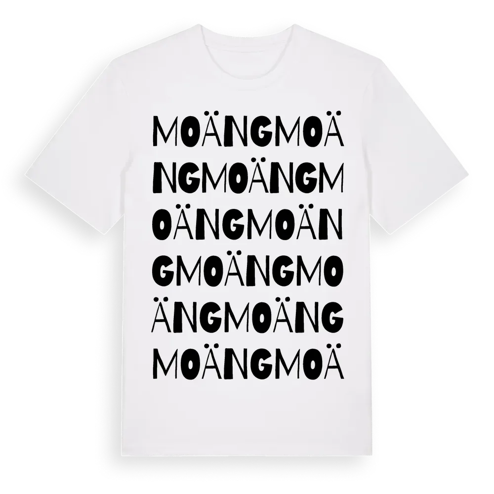 Moäng ordlek t-shirt är inspirerad av Moäng i Värmlands län, Sverige. Tröjan är designad för dig som har en speciell koppling till platsen – oavsett om du bor här, har rötterna här eller bara älskar Moäng.