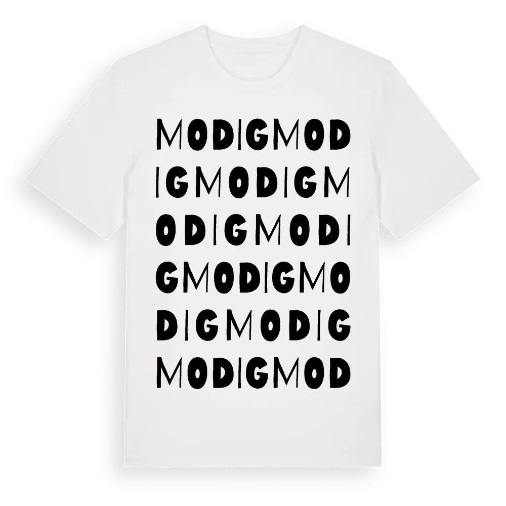 Modig ordlek t-shirt är inspirerad av Modig i Värmlands län, Sverige. Tröjan är designad för dig som har en speciell koppling till platsen – oavsett om du bor här, har rötterna här eller bara älskar Modig.