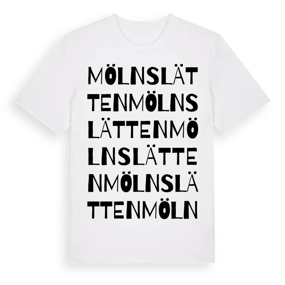 En ordlek byggd på Mölnslättens namn. Subtilt och klurig – ett motiv som bara de som verkligen känner platsen fullt ut förstår. Premium bomull, unisex – från byn Mölnslätten i Värmlands län.