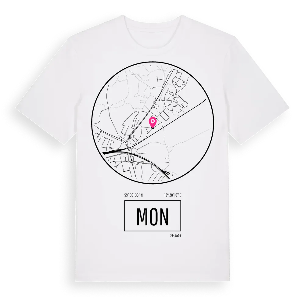 Mon t-shirt är inspirerad av stadsdelen Mon i Värmlands län, Sverige. Tröjan är designad för dig som har en speciell koppling till platsen – oavsett om du bor här, har rötterna här eller bara älskar Mon.