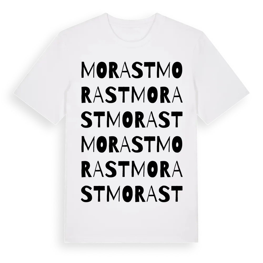 Morast ordlek t-shirt är inspirerad av byn Morast i Värmlands län, Sverige. Tröjan är designad för dig som har en speciell koppling till platsen – oavsett om du bor här, har rötterna här eller bara älskar Morast.