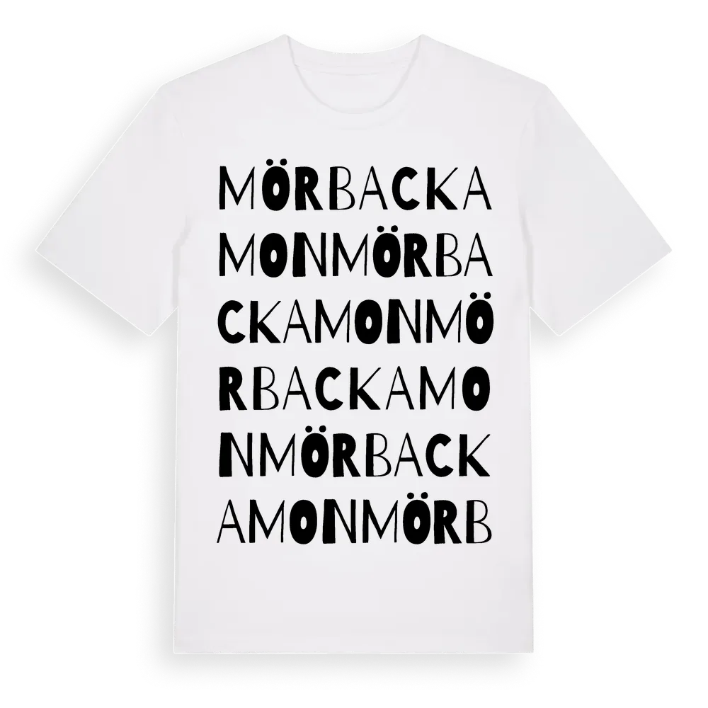 Mörbackamon ordlek t-shirt är inspirerad av Mörbackamon i Värmlands län, Sverige. Tröjan är designad för dig som har en speciell koppling till platsen – oavsett om du bor här, har rötterna här eller bara älskar Mörbackamon.