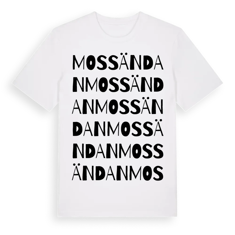 Mossändan ordlek t-shirt är inspirerad av Mossändan i Värmlands län, Sverige. Tröjan är designad för dig som har en speciell koppling till platsen – oavsett om du bor här, har rötterna här eller bara älskar Mossändan.