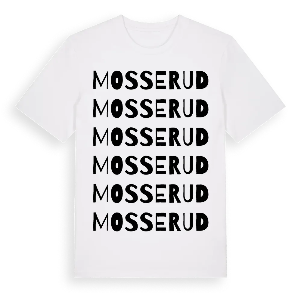 Mosserud ordlek t-shirt är inspirerad av Mosserud i Värmlands län, Sverige. Tröjan är designad för dig som har en speciell koppling till platsen – oavsett om du bor här, har rötterna här eller bara älskar Mosserud.