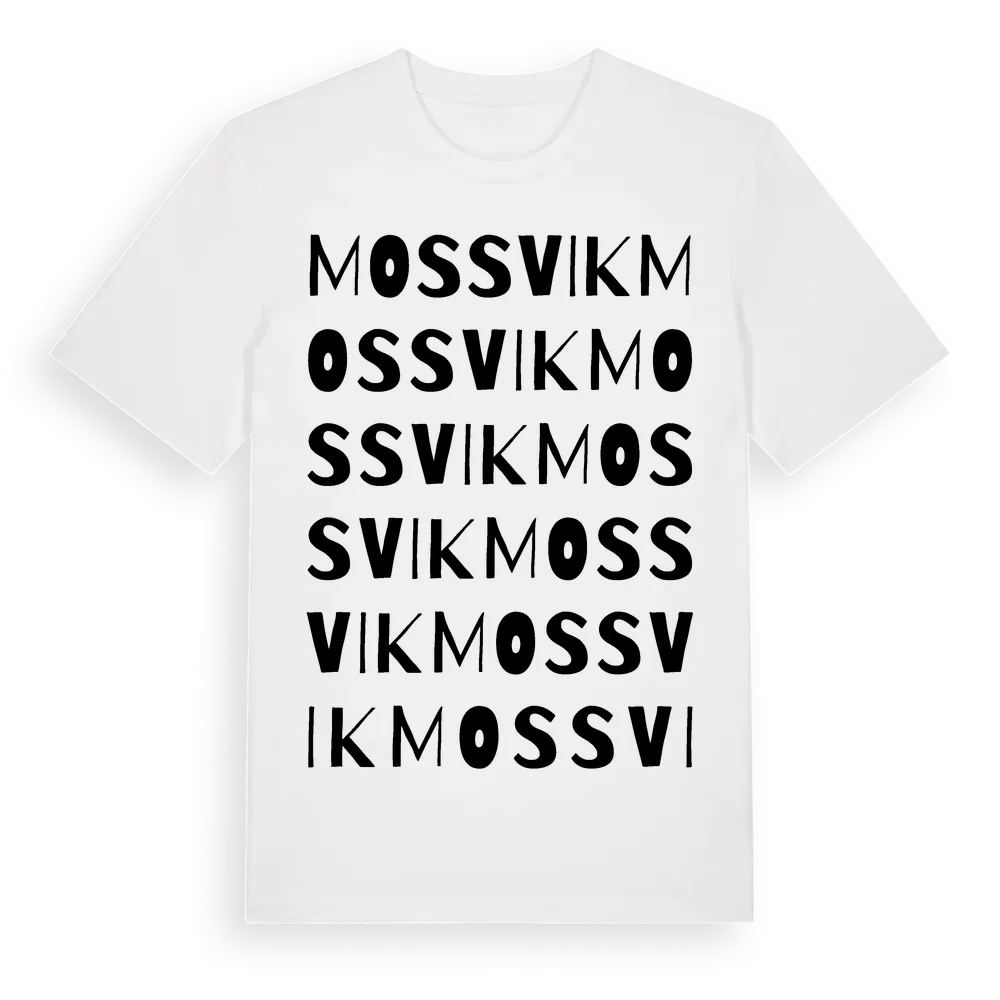 Mossvik ordlek t-shirt är inspirerad av Mossvik i Värmlands län, Sverige. Tröjan är designad för dig som har en speciell koppling till platsen – oavsett om du bor här, har rötterna här eller bara älskar Mossvik.