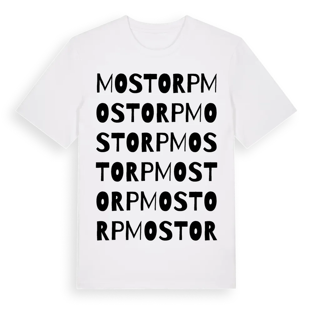 Mostorp ordlek t-shirt är inspirerad av Mostorp i Värmlands län, Sverige. Tröjan är designad för dig som har en speciell koppling till platsen – oavsett om du bor här, har rötterna här eller bara älskar Mostorp.