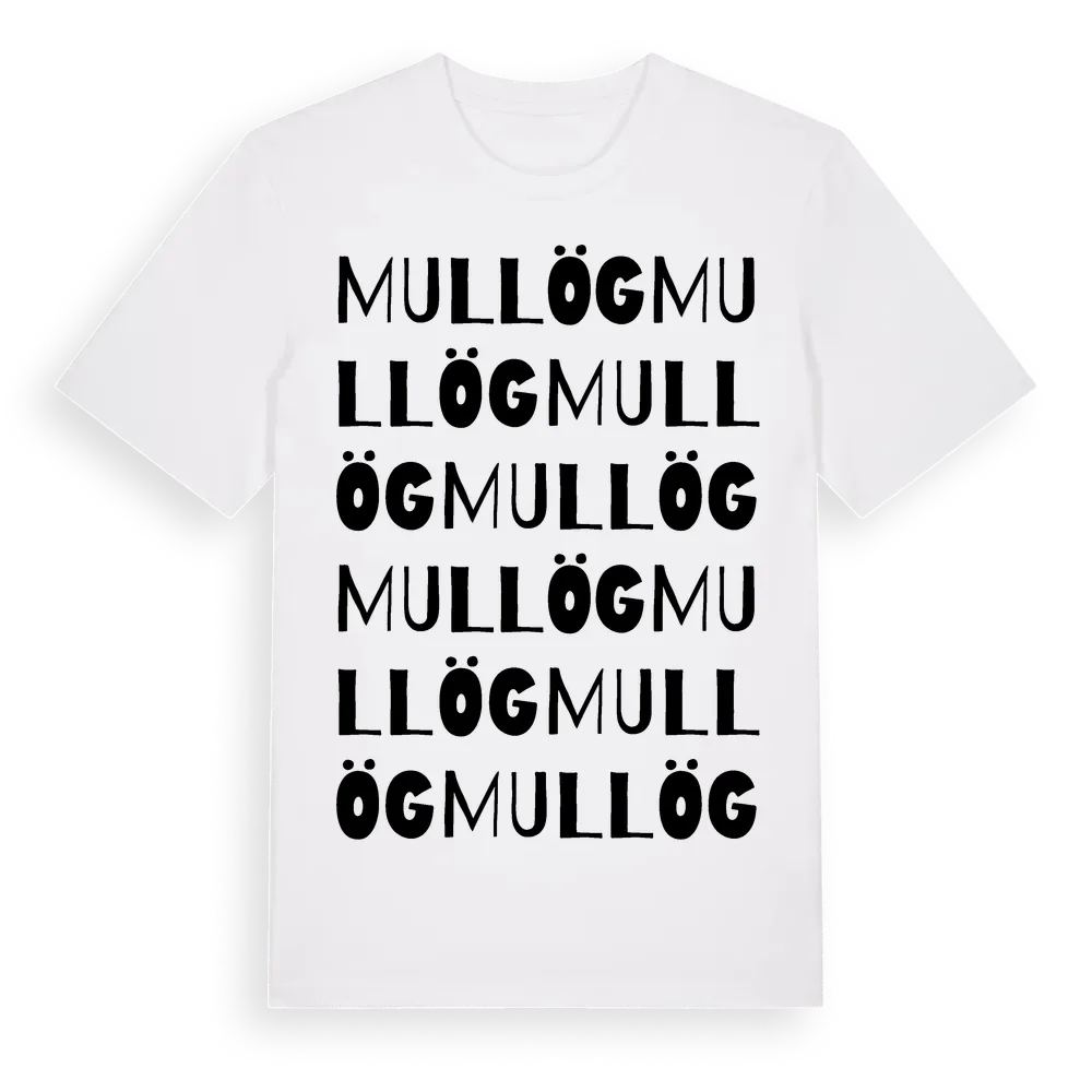 Mullög ordlek t-shirt är inspirerad av Mullög i Värmlands län, Sverige. Tröjan är designad för dig som har en speciell koppling till platsen – oavsett om du bor här, har rötterna här eller bara älskar Mullög.