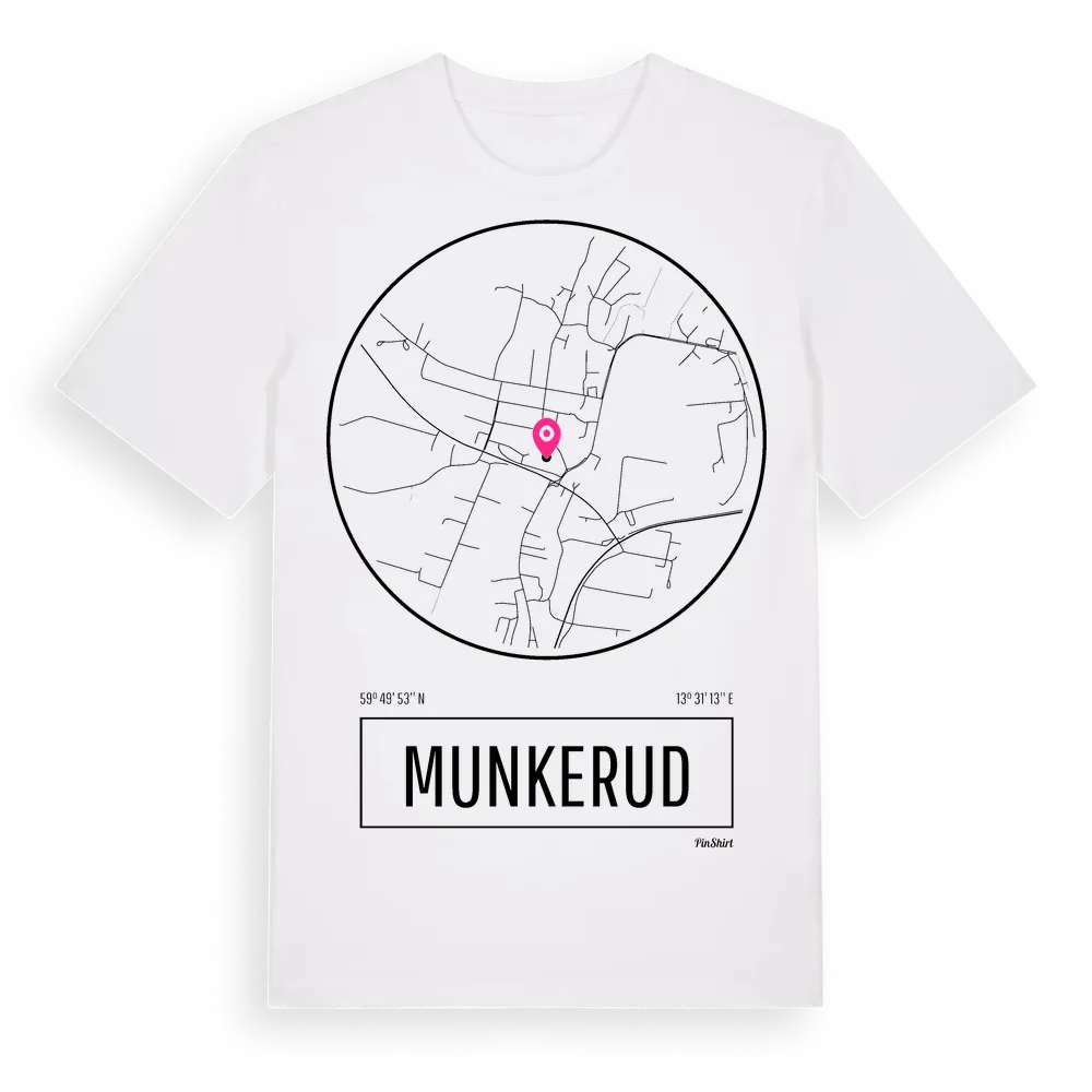 Munkerud t-shirt är inspirerad av byn Munkerud i Värmlands län, Sverige. Tröjan är designad för dig som har en speciell koppling till platsen – oavsett om du bor här, har rötterna här eller bara älskar Munkerud.