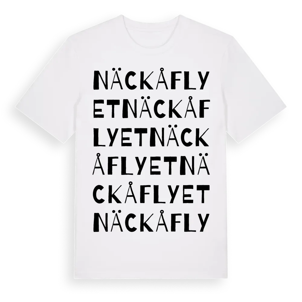 Näckåflyet ordlek t-shirt är inspirerad av Näckåflyet i Värmlands län, Sverige. Tröjan är designad för dig som har en speciell koppling till platsen – oavsett om du bor här, har rötterna här eller bara älskar Näckåflyet.
