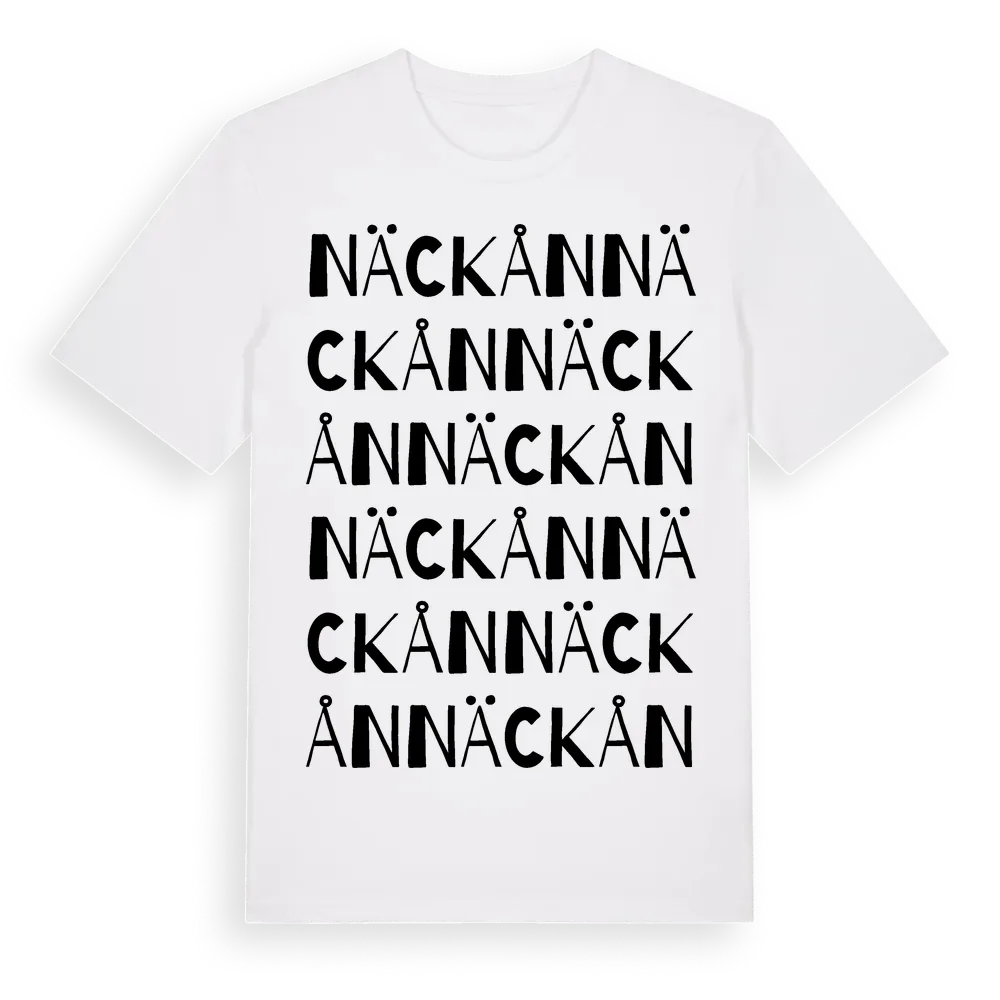 Näckån ordlek t-shirt är inspirerad av stadsdelen Näckån i Värmlands län, Sverige. Tröjan är designad för dig som har en speciell koppling till platsen – oavsett om du bor här, har rötterna här eller bara älskar Näckån.