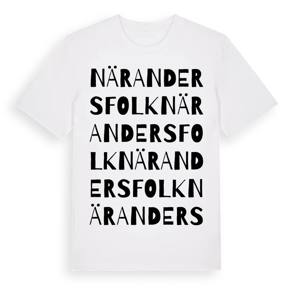När Andersfolk ordlek t-shirt är inspirerad av När Andersfolk i Värmlands län, Sverige. Tröjan är designad för dig som har en speciell koppling till platsen – oavsett om du bor här, har rötterna här eller bara älskar När Andersfolk.