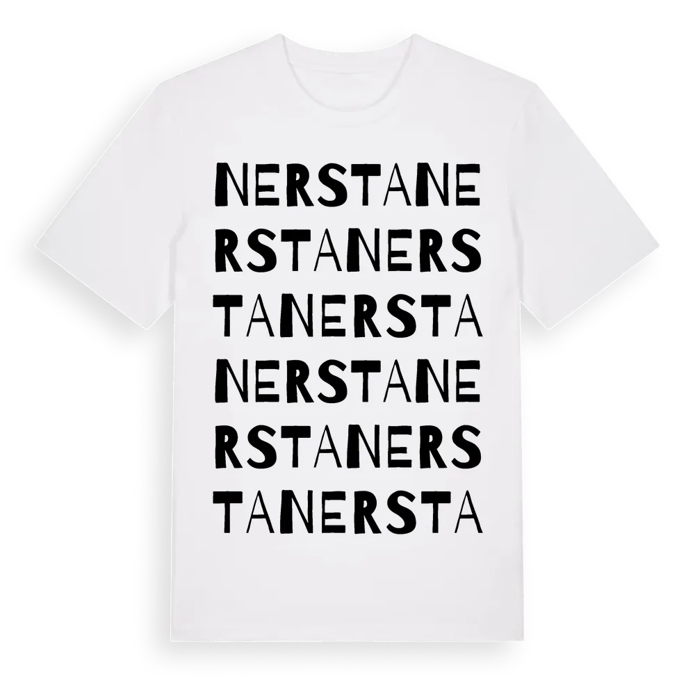 Nersta ordlek t-shirt är inspirerad av Nersta i Värmlands län, Sverige. Tröjan är designad för dig som har en speciell koppling till platsen – oavsett om du bor här, har rötterna här eller bara älskar Nersta.