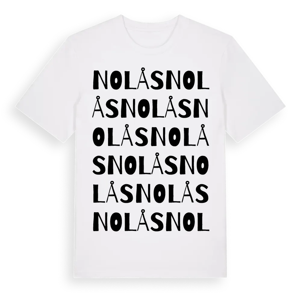 Nolås ordlek t-shirt är inspirerad av Nolås i Värmlands län, Sverige. Tröjan är designad för dig som har en speciell koppling till platsen – oavsett om du bor här, har rötterna här eller bara älskar Nolås.