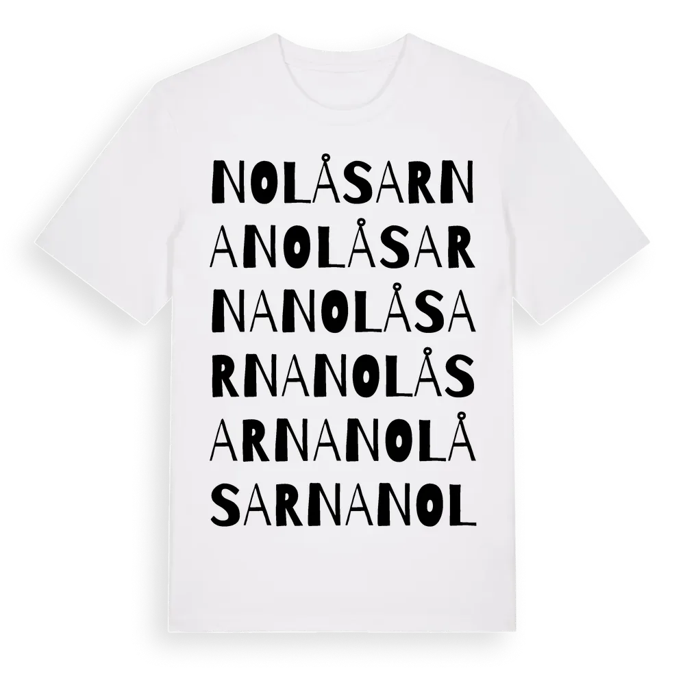 Nolåsarna ordlek t-shirt är inspirerad av byn Nolåsarna i Värmlands län, Sverige. Tröjan är designad för dig som har en speciell koppling till platsen – oavsett om du bor här, har rötterna här eller bara älskar Nolåsarna.