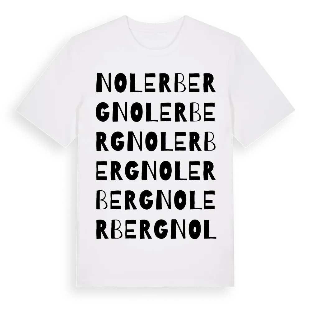 Noler Berg ordlek t-shirt är inspirerad av Noler Berg i Värmlands län, Sverige. Tröjan är designad för dig som har en speciell koppling till platsen – oavsett om du bor här, har rötterna här eller bara älskar Noler Berg.
