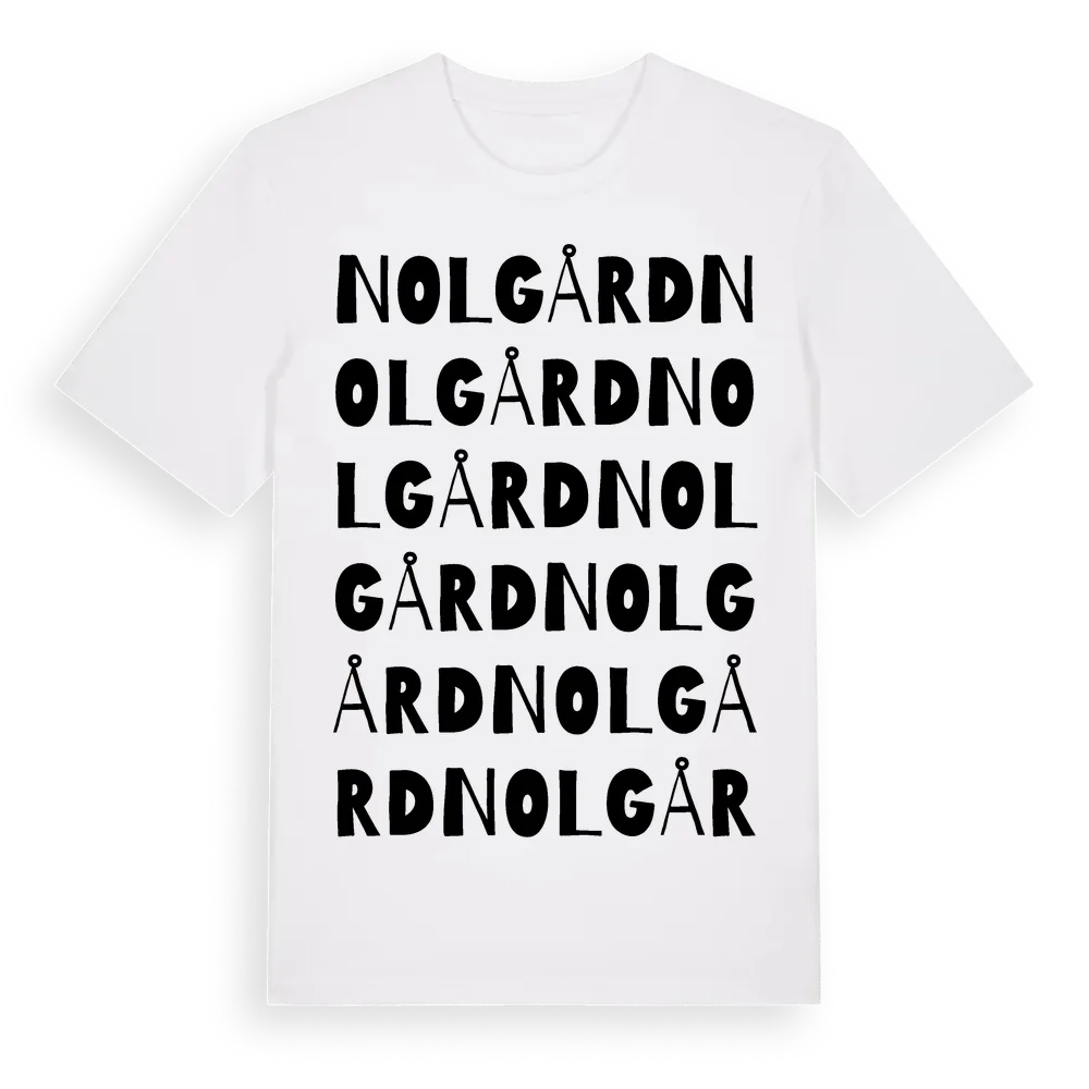 Nolgård ordlek t-shirt är inspirerad av Nolgård i Värmlands län, Sverige. Tröjan är designad för dig som har en speciell koppling till platsen – oavsett om du bor här, har rötterna här eller bara älskar Nolgård.