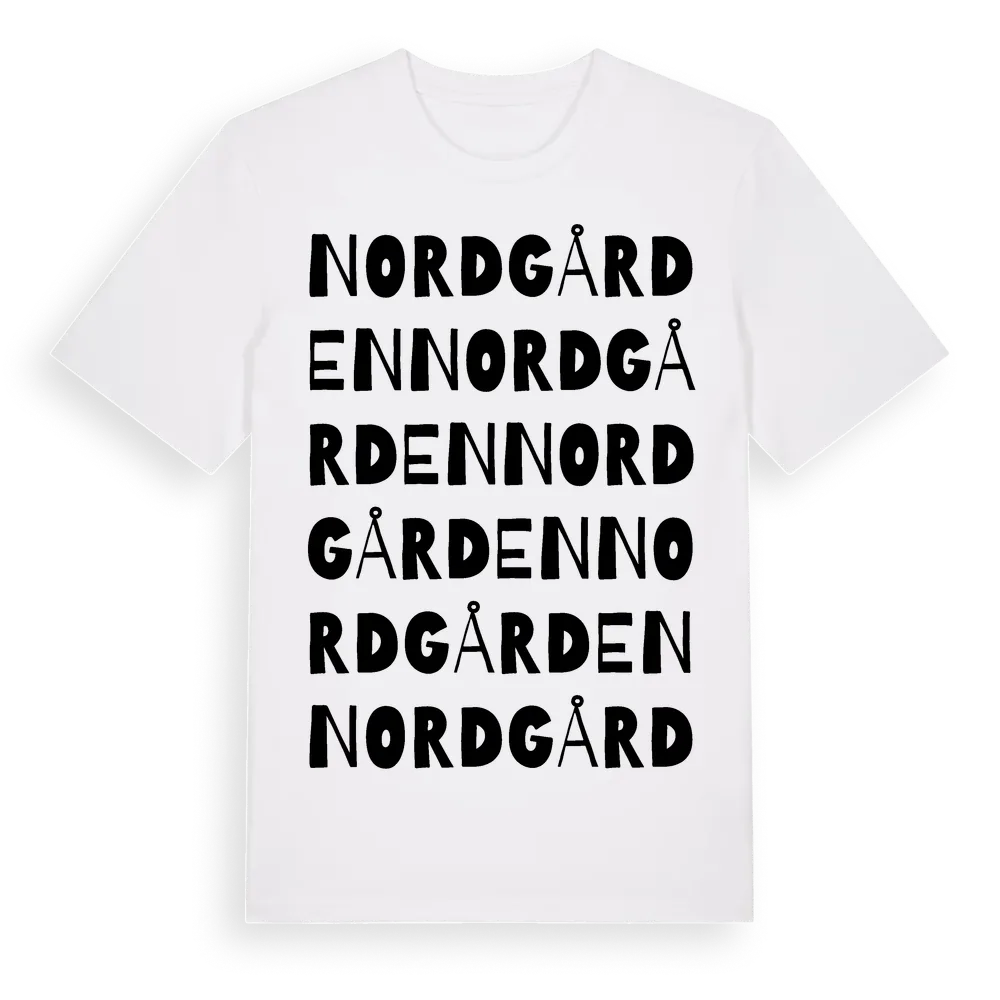 Nordgården ordlek t-shirt är inspirerad av Nordgården i Värmlands län, Sverige. Tröjan är designad för dig som har en speciell koppling till platsen – oavsett om du bor här, har rötterna här eller bara älskar Nordgården.