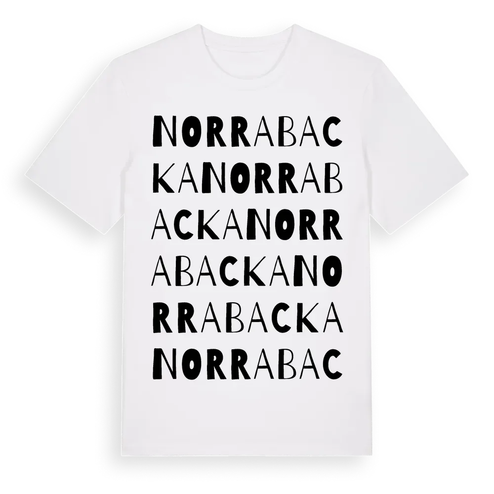 Norra Backa ordlek t-shirt är inspirerad av byn Norra Backa i Värmlands län, Sverige. Tröjan är designad för dig som har en speciell koppling till platsen – oavsett om du bor här, har rötterna här eller bara älskar Norra Backa.