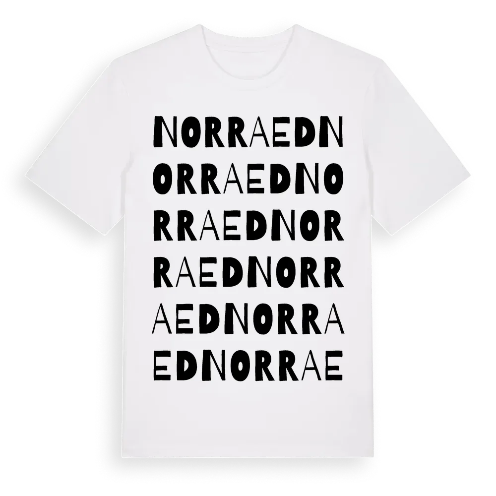 Norra Ed ordlek t-shirt är inspirerad av Norra Ed i Värmlands län, Sverige. Tröjan är designad för dig som har en speciell koppling till platsen – oavsett om du bor här, har rötterna här eller bara älskar Norra Ed.