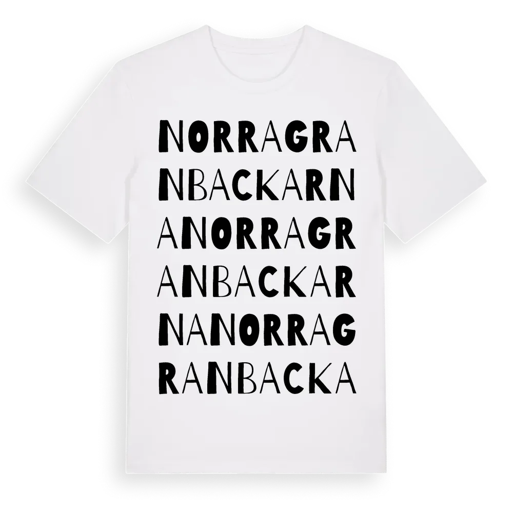 Norra Granbackarna ordlek t-shirt är inspirerad av Norra Granbackarna i Värmlands län, Sverige. Tröjan är designad för dig som har en speciell koppling till platsen – oavsett om du bor här, har rötterna här eller bara älskar Norra Granbackarna.