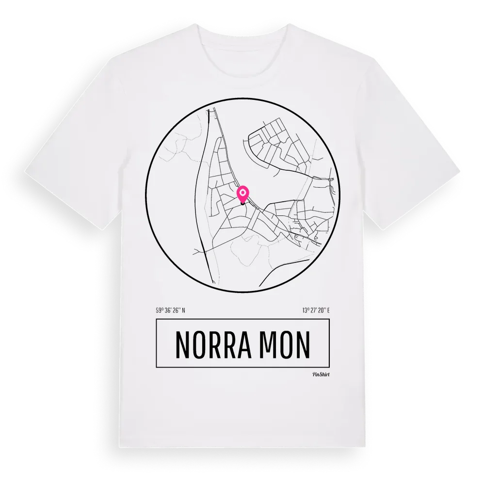 Norra Mon t-shirt är inspirerad av stadsdelen Norra Mon i Värmlands län, Sverige. Tröjan är designad för dig som har en speciell koppling till platsen – oavsett om du bor här, har rötterna här eller bara älskar Norra Mon.