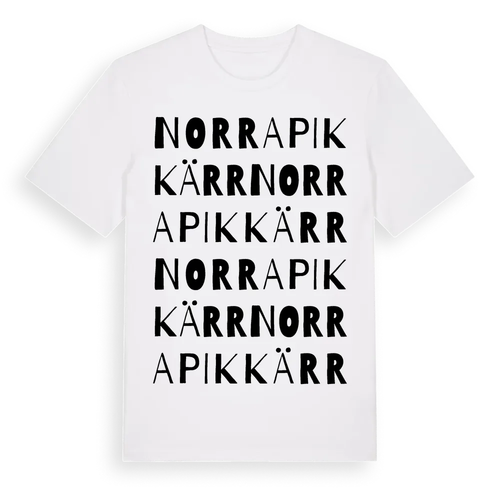 Norra Pikkärr ordlek t-shirt är inspirerad av Norra Pikkärr i Värmlands län, Sverige. Tröjan är designad för dig som har en speciell koppling till platsen – oavsett om du bor här, har rötterna här eller bara älskar Norra Pikkärr.