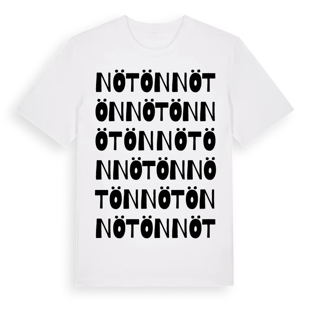 Nötön ordlek t-shirt är inspirerad av byn Nötön i Värmlands län, Sverige. Tröjan är designad för dig som har en speciell koppling till platsen – oavsett om du bor här, har rötterna här eller bara älskar Nötön.