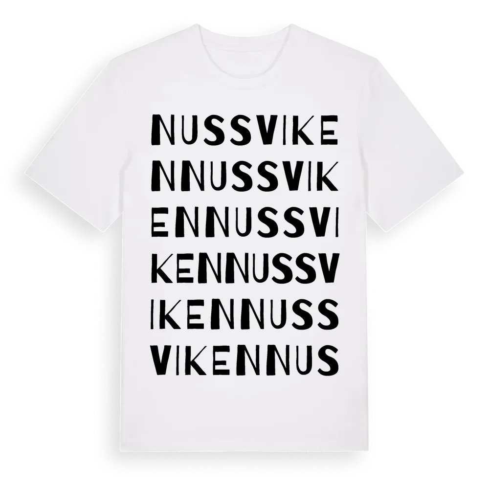 Nussviken ordlek t-shirt är inspirerad av byn Nussviken i Värmlands län, Sverige. Tröjan är designad för dig som har en speciell koppling till platsen – oavsett om du bor här, har rötterna här eller bara älskar Nussviken.