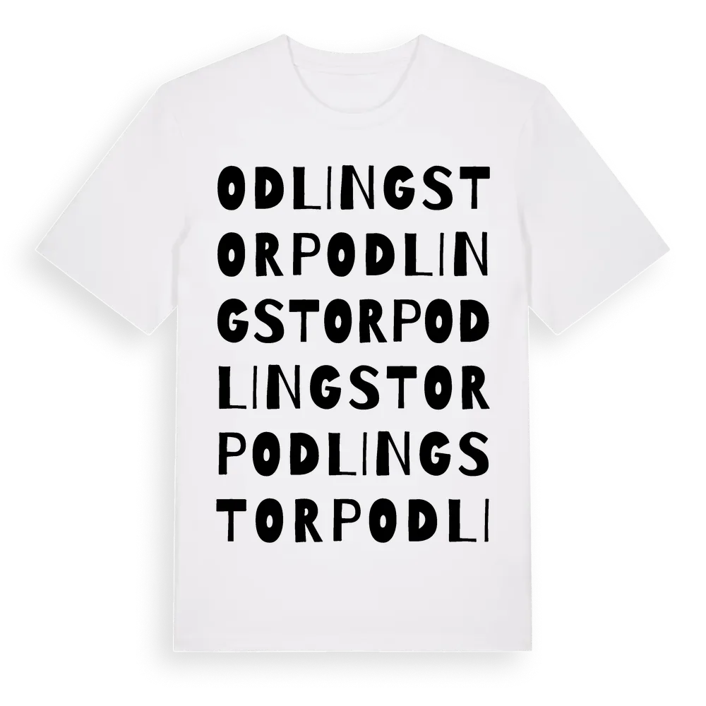 Odlingstorp ordlek t-shirt är inspirerad av Odlingstorp i Värmlands län, Sverige. Tröjan är designad för dig som har en speciell koppling till platsen – oavsett om du bor här, har rötterna här eller bara älskar Odlingstorp.