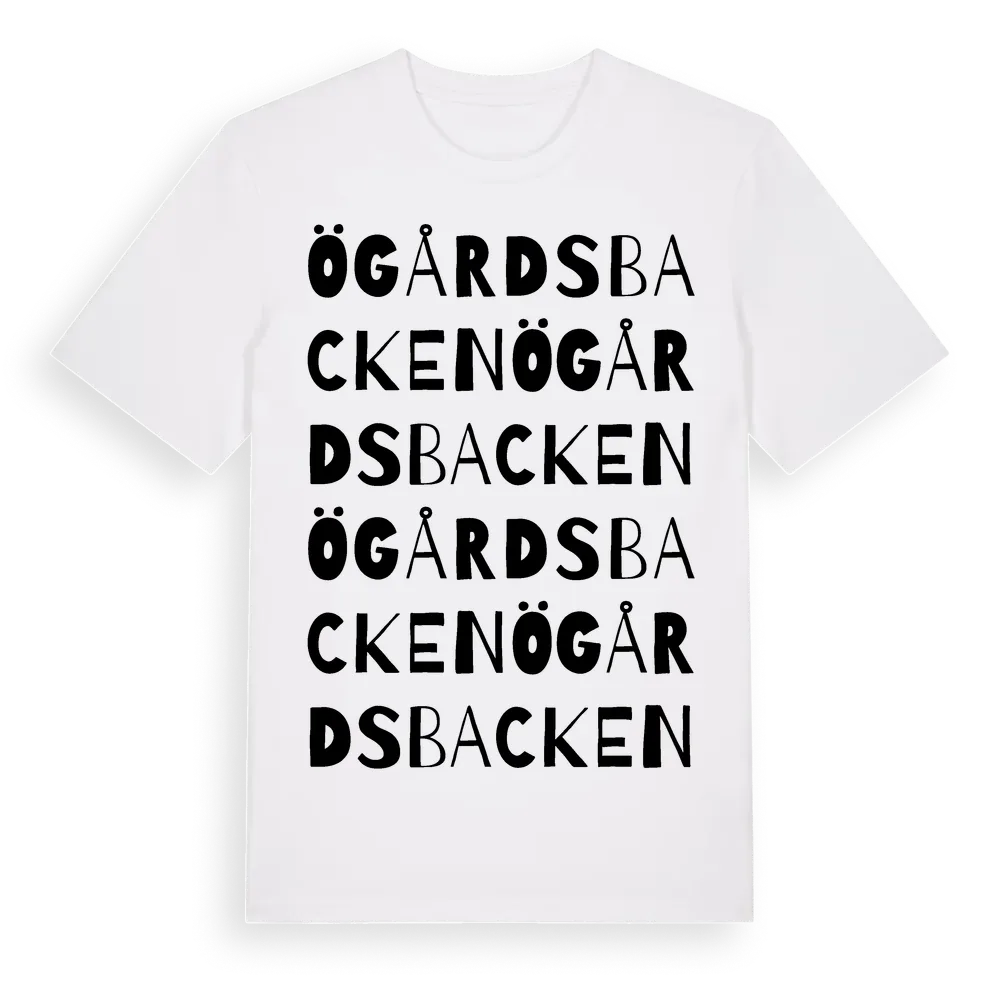 Ögårdsbacken ordlek t-shirt är inspirerad av Ögårdsbacken i Värmlands län, Sverige. Tröjan är designad för dig som har en speciell koppling till platsen – oavsett om du bor här, har rötterna här eller bara älskar Ögårdsbacken.