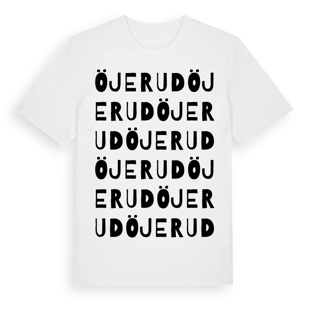 Öjerud ordlek t-shirt är inspirerad av Öjerud i Värmlands län, Sverige. Tröjan är designad för dig som har en speciell koppling till platsen – oavsett om du bor här, har rötterna här eller bara älskar Öjerud.